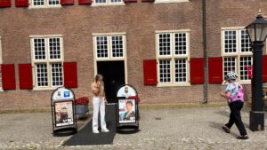 Ze laat trots de displays zien van een vaste expositie, het Verhaal van Zeist. “Dit heeft de lokale erfgoedorganisatie ‘het Geheugen van Zeist’ geïnitieerd, vanuit hun kennis en expertise met de Zeister historie. Op het moment dat het slot dicht is voor rondleidingen, kan de bezoeker toch meer te weten komen over de geschiedenis. Vrijwilligers van Het Gilde verzorgen de rondleidingen, ook zo’n geweldige club.”