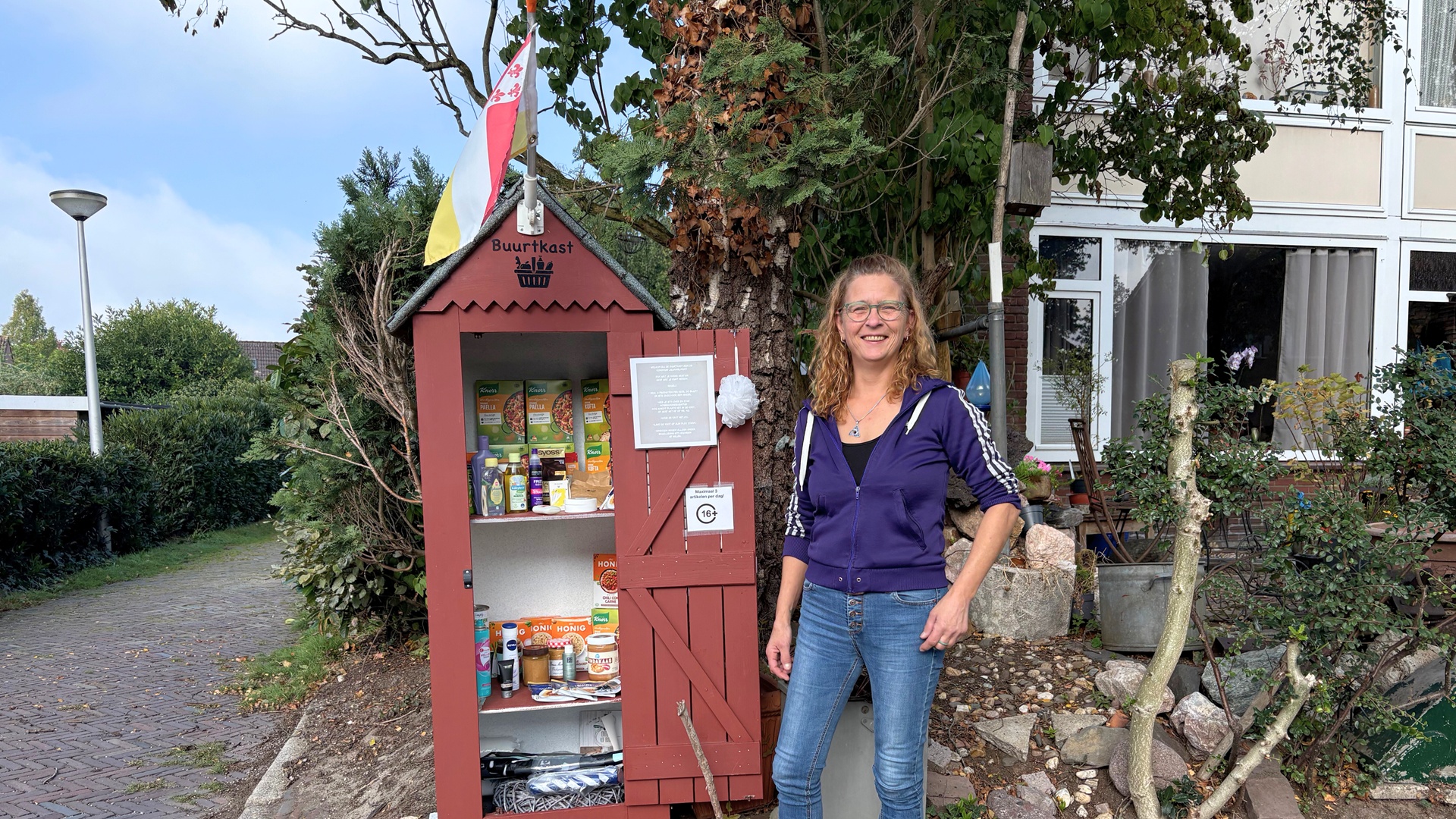 Overigens vindt ze het ook prima als mensen producten bij haar voordeur –die vaak open staat– afgeven. “Val maar binnen, ik vind dat gewoon gezellig. Ik houd de spullen in de kast in de gaten en houd ook wat achter de hand voor de momenten dat de kast leeg raakt.”