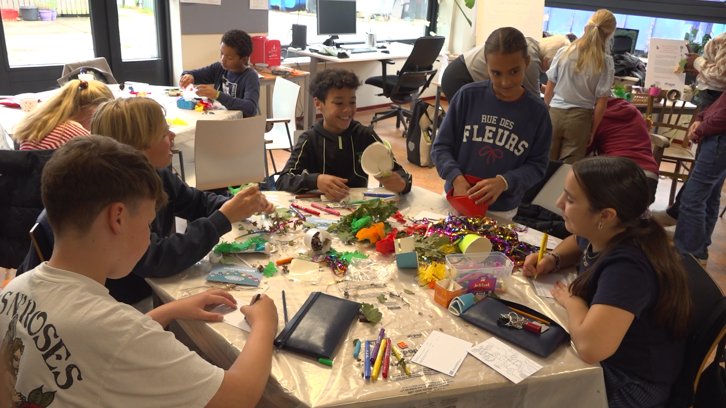 De Biltse Duurzame Schoolweken zijn maandag van start gegaan. Kinderen uit groep 8 van basisschool De Nijenpoort verzamelden zich op de gemeentewerf in De Bilt om de Toekomststoel te versieren, onder begeleiding van de Grootouders voor het Klimaat. “Met allemaal duurzaam materiaal”, benadrukt Ella Prins, lokale Projectleider van de Schoolweken van de Duurzaamheid. “Maar we gebruiken ook plastic, om te laten zien hoe groot dat onderscheid is.”