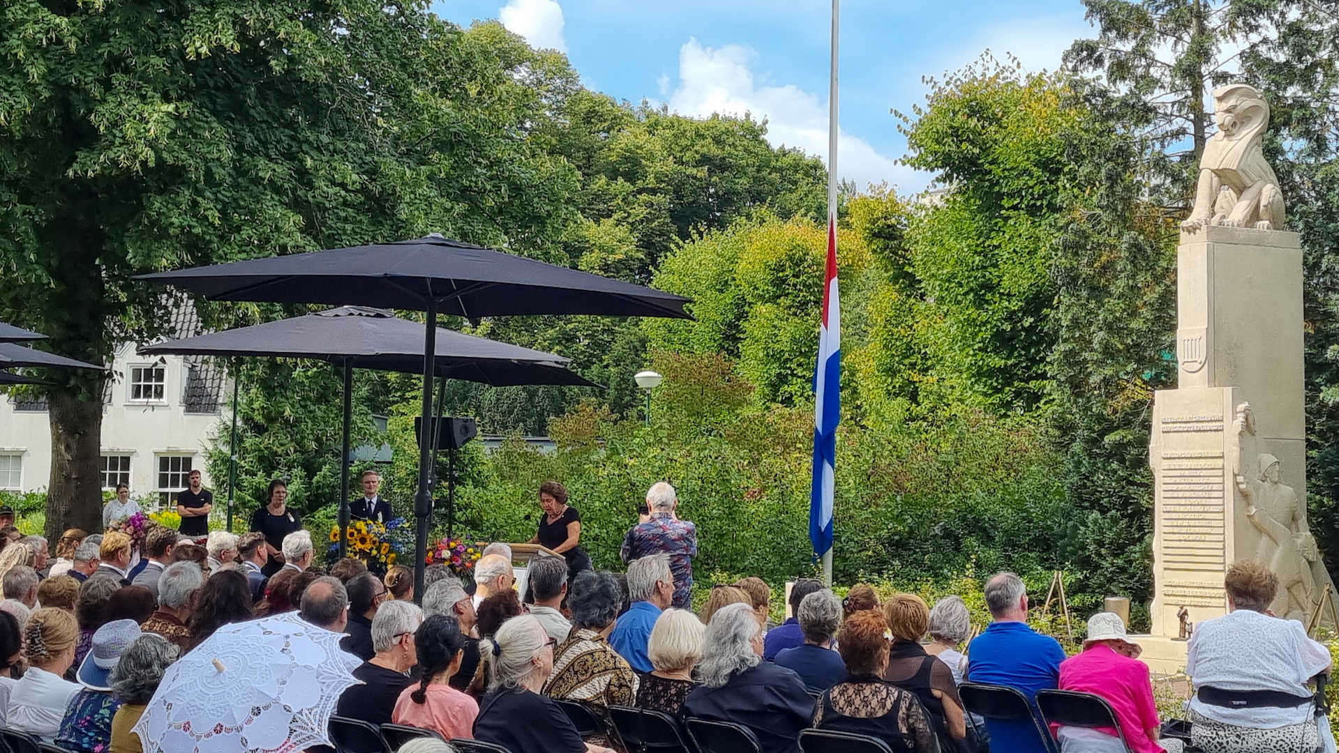 Burgemeester Haverkamp hield tijdens het officiële gedeelte een toespraak. “Het zelfbewustzijn van de tweede en derde generatie helpt een stem te geven aan hen die hun stem kwijtraakten. (…) De verhalen die we nu wel kunnen horen, helpen ons om dit deel van onze geschiedenis een plek te geven in het bewustzijn van ons allemaal.” Ook Marieke Fréquin-Delmaar, wier vader het Jappenkamp en de Birma-spoorweg in Nedderlands-Indië heeft overleefd, sprak de aanwezigen toe. Aansluitend was er een kranslegging.