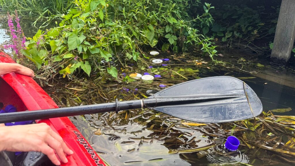 Sinds vrijdag drijven er honderden gekleurde plastic doppen in de Kromme Rijn tussen Bunnik en Utrecht. De doppen zijn slecht