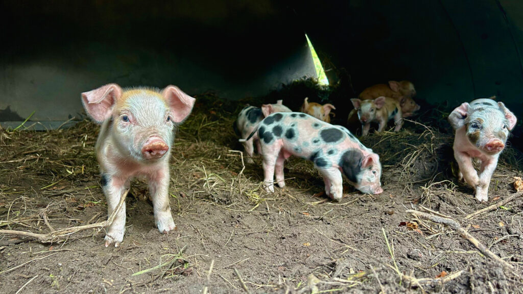 Op het landgoed Zuylestein dartelen sinds deze week acht kleine biggetjes om een trotse mamazeug Odette. Kijkers zijn van harte