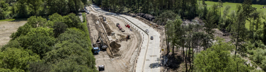 De aanleg van het ecoduct over de N226 bij Maarsbergen is gestart met het aanbrengen van gewapende grond. Met deze