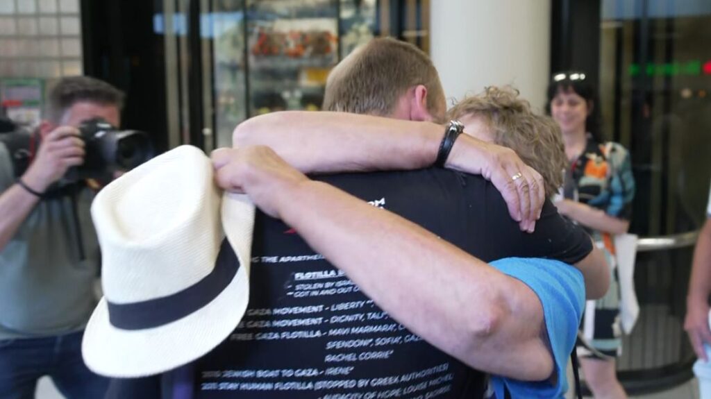 Mark van Rennes uit Wijk bij Duurstede, die de afgelopen anderhalve week in Israëlische gevangenschap heeft doorgebracht nadat het hulpschip