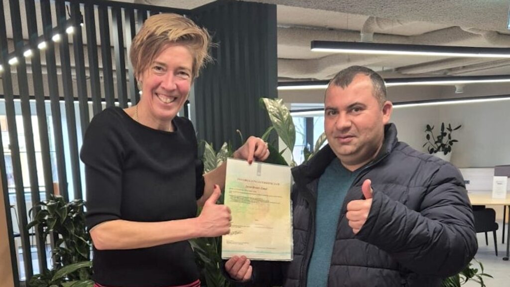 De eerste Z-route-kandidaat die voor zijn inburgering is geslaagd, is door de Regionale Sociale Dienst in het zonnetje gezet. De