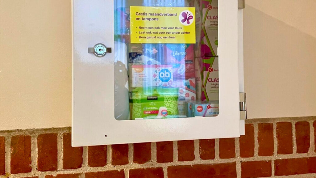Leerlingen van De Breul in Zeist kunnen voortaan gratis menstruatieproducten halen op school. Met dit nieuwe uitgiftepunt zijn er twintig