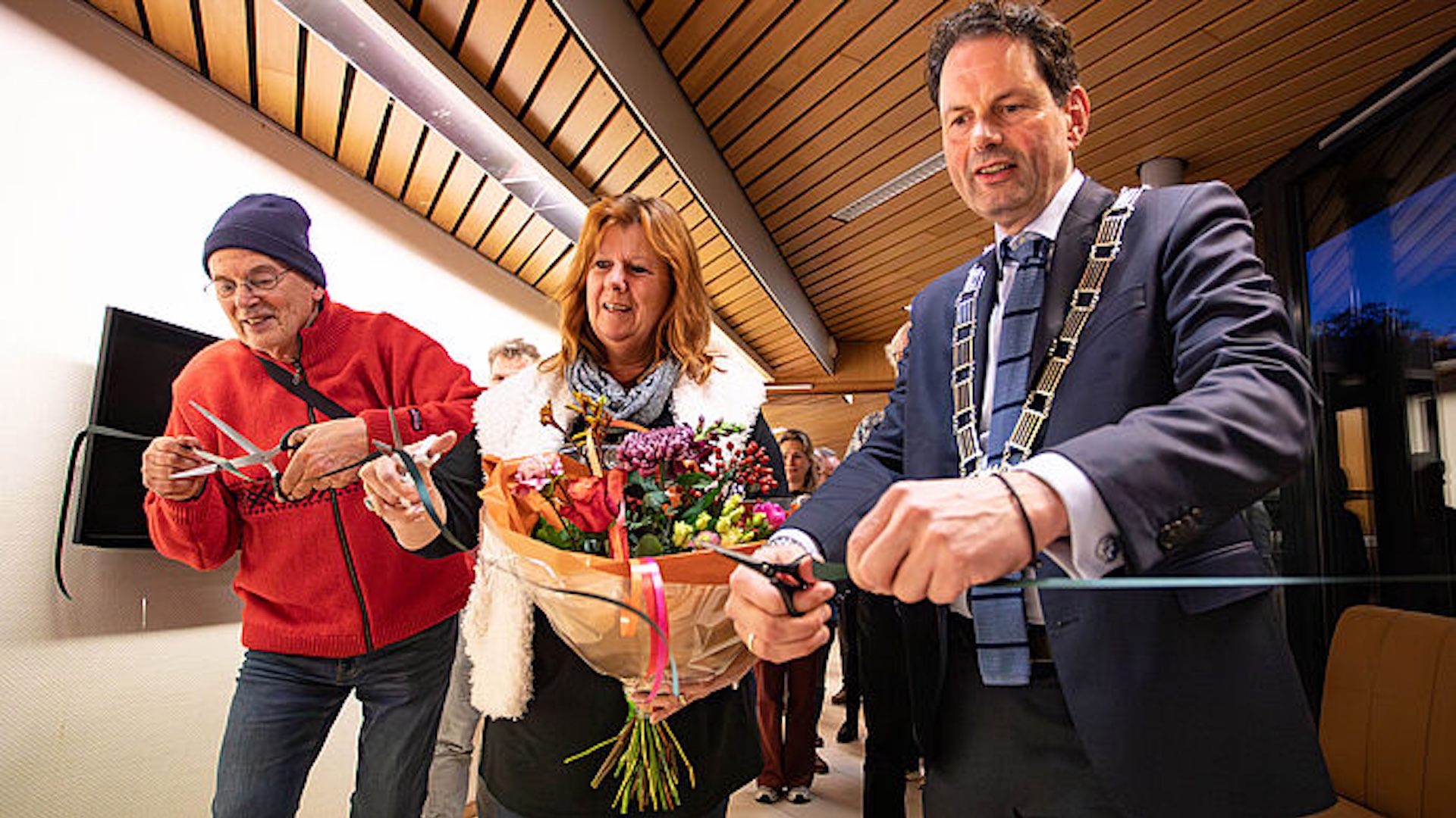 Burgemeester Haverkamp opent met de winnaars de tentoonstelling (foto: gemeente De Bilt)