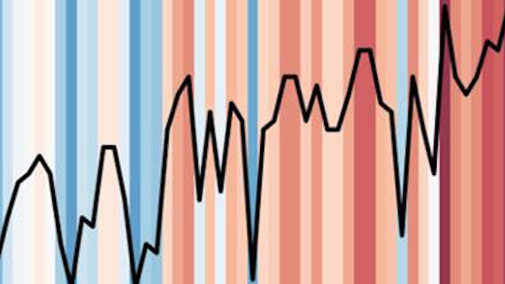 Het KNMI heeft voor 2025 een rood streepje toegevoegd aan de klimaatstreepjescode. De reeks gekleurde lijnen laat zien hoe de temperatuur in Nederland verandert.