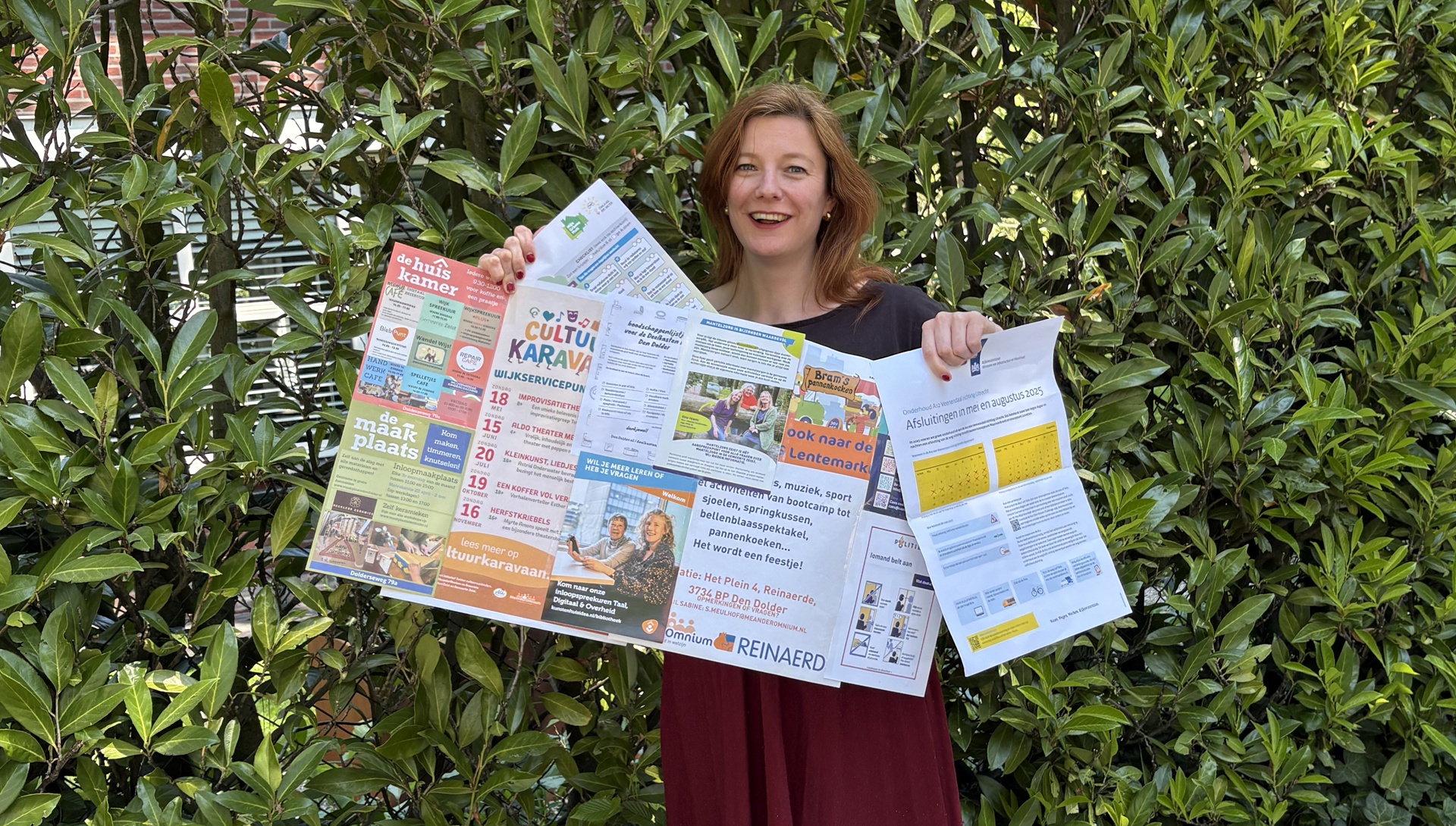 Berichten vanuit het wijkteam kunnen op het bord. Meulhof wijst naar de beschikbare folders en informatiemiddelen in haar hand. “Maar er is ook plek voor een activiteitenagenda, samengesteld door sleutelpersonen in de gemeenschap. Iemand kan er een briefje ophangen omdat zijn tante Tinie het leuk zou vinden iemand op de koffie te krijgen. Of een dorpsgenoot meldt dat hij kinderlaarsjes heeft voor iemand die ze kan gebruiken. Dit zijn voorbeelden, maar allerlei oproepjes voor burenhulp/maatjes zijn welkom. Dan delen we niet alleen nieuws, maar draagt het bord ook bij aan de sociale samenhang in onze gemeenschap.”