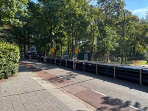 De Traaij is sinds maandag dicht en blijft afgesloten tot en met 24 oktober. Vitens gaat een waterleiding aanleggen in de straat. “Het gaat om maar liefst 600 meter aan nieuwe waterleiding”, vertelt Haaxma. “Bovengronds worden leidingdelen aan elkaar gelast. Daarna wordt de leiding een stuk verder gelegd, richting de Arnhemsebovenweg, en wordt de leiding in een keer de grond in getrokken. Daarom hebben we fysiek veel ruimte nodig, maar blijft er wel een rijbaan open en ook fietsers kunnen erdoor.”