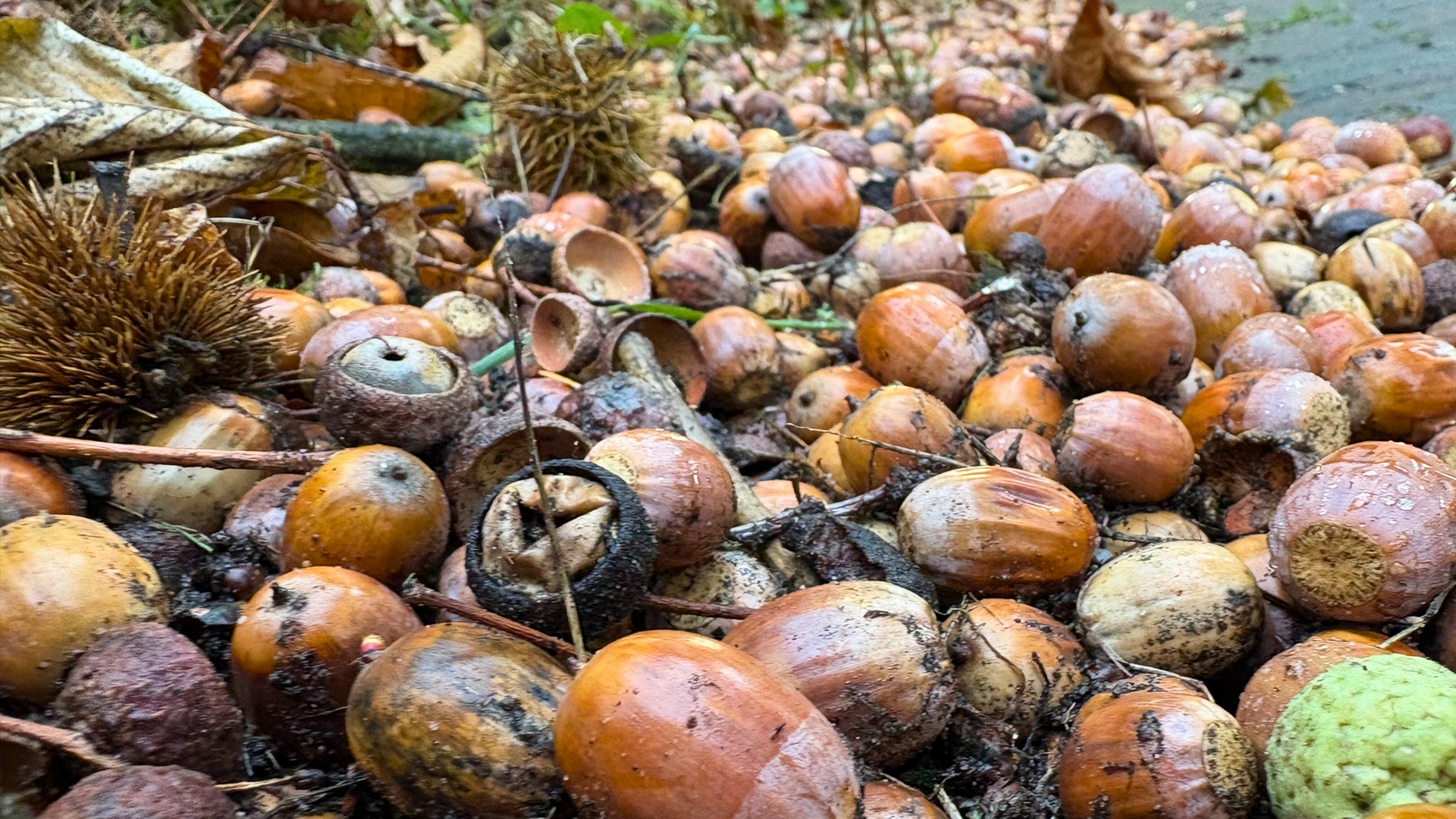 De meeste eikels liggen in de bossen op particuliere landgoederen. Daar groeien veel inlandse eiken, zomereiken dus. “De wintereik moet je met een lantaarntje zoeken in onze natuur. En de Amerikaanse eik werpt niet zoveel vruchten af dit jaar. Die heeft namelijk een tweejaarlijkse vruchtcyclus in plaats van de eenjarige bij onze inlandse eiken.”
