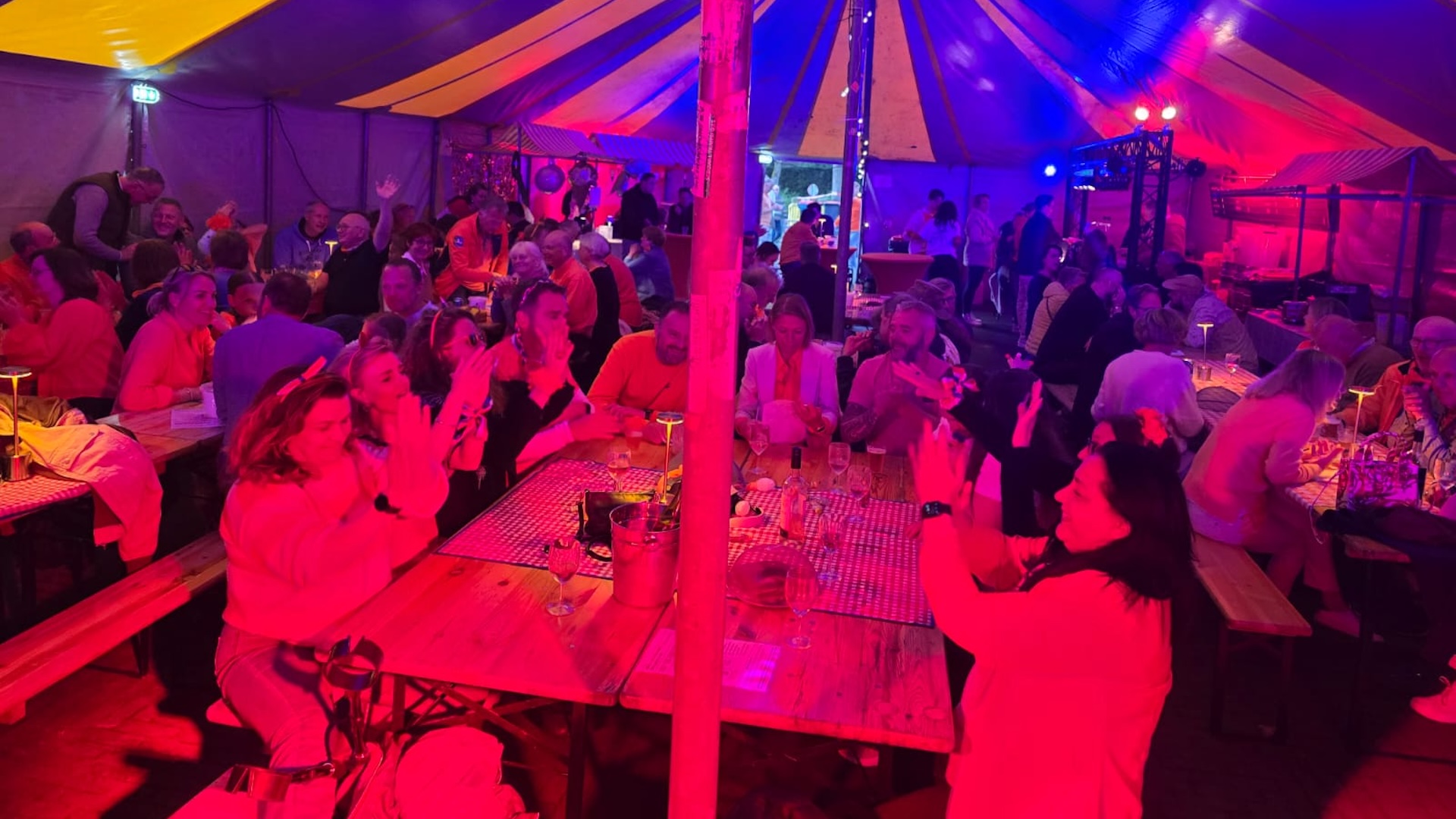 In een volle feesttent vuurde Michiel Akkerman 60 vragen af op de teams, die met name door de muziekvragen een geweldige avond hadden.
