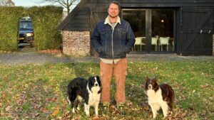 Hij onderbreekt zijn verhaal om hond Lily achter de oren te krabben, die met Daniels andere bordercollie Benjamin enthousiast heen en weer dribbelt door de ruimte. “Wat is er, meis? Je wilt naar de schaapjes hè?”
