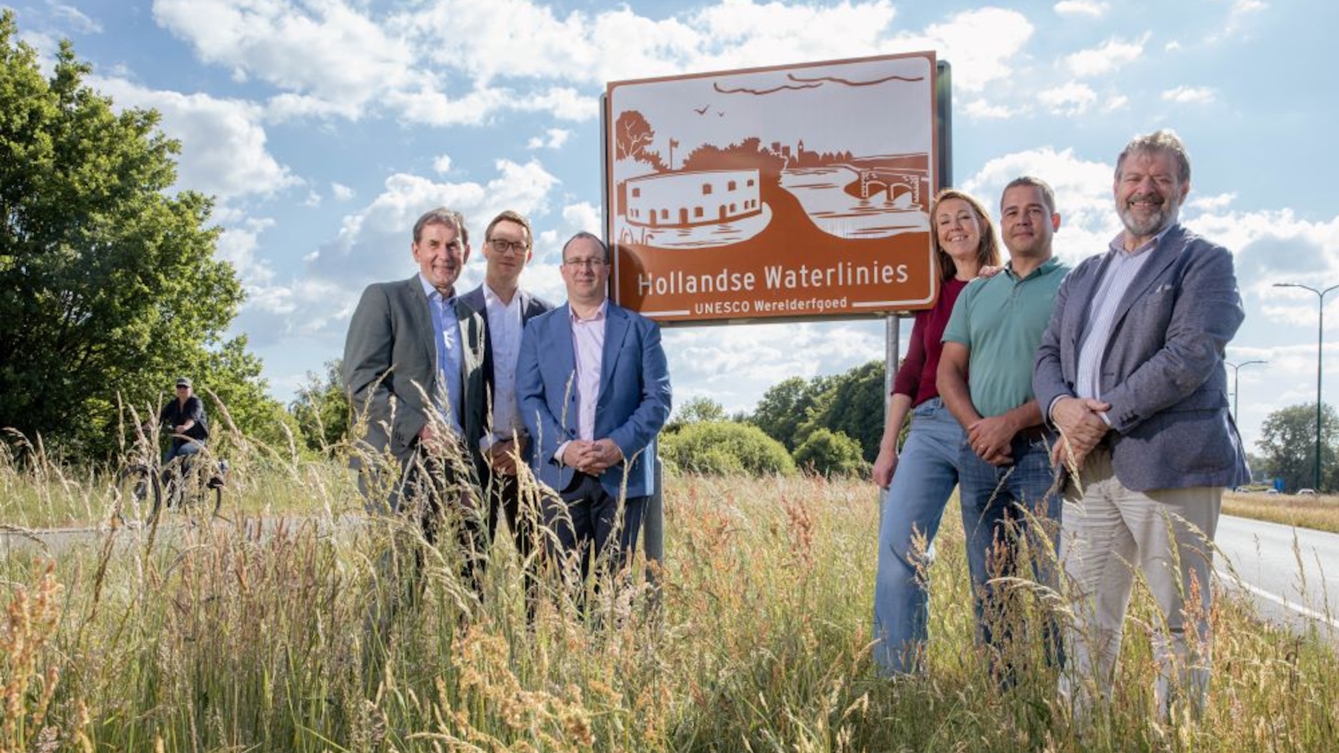 De borden die streken en erfgoed duiden zijn door het land te zien langs de autowegen, maar niet langs fietsroutes. Op initiatief van de raadsfracties Lokaal De Bilt, SGP en VVD is daar nu verandering in gekomen. Het bord dat aandacht vestigt op de Hollandse Waterlinies is onthuld in aanwezigheid van de initiatiefnemers, wethouders ‘t Hart en Van de Veerdonk en gedeputeerde Van Muilekom.