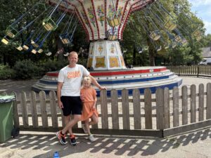 Vakantieganger Robert Beugelink geniet met zijn vier kinderen van de speeltuin bij de Pyramide van Austerlitz. Het is hier rustiger dan normaal, maar dat maakt de pret er bij zijn viertal niet minder om. “Ik heb inderdaad gezien dat er voor een wolf wordt gewaarschuwd. De borden langs de weg zijn niet te missen.”