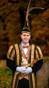 Dat liet Mark zich geen twee keer zeggen. Eerst bij de Raad van Elf, daarna werd de accountant uit Langbroek –werkzaam in Bunnik– penningmeester van het bestuur. En nu is hij dan verkozen tot Prins Carnaval. Was dat een verrassing? “Je moet het wel echt leuk vinden om Prins te zijn”, legt hij uit. “Als je niet wil dat mensen op je gaan stemmen, moet je je eigenlijk afmelden.” Hij lacht: “Dat heb ik natuurlijk niet gedaan. Vorig jaar werd ik het niet, en nu is het zover. Een grote eer voor mij”.