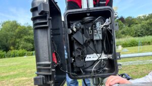 Op 1 mei vierde SMAL Zeist een doorbraak. Toen werd hun eigen meetstation op het meetveld van het KNMI in De Bilt actief. Jouke van Baar leidt de bezoekers rond op de plek waar het allemaal gebeurt. “Als je op de radio hoort dat het 32 graden is in De Bilt, dan is dat hier”, wijst hij naar de sensoren op het grasveld. Om te eindigen bij Veld 6, sectie 6. Hier staan de stations van SMAL Zeist, waar de Zeister mannen de techniek van de zelfgebouwde sensoren uitleggen. “Met de gegevens van onze stations hier kunnen we altijd checken hoe onze kastjes zich gedragen ten opzichte van de professionele metingen. Heel gaaf”, zegt Egon.