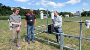 Jacco van Ekris en Jouke de Baar (KNMI) met Bart van der Wolf en Egon Kastelijn bij de meetstations van SMAL Zeist in De Bilt (foto: Omroep ZOUT)